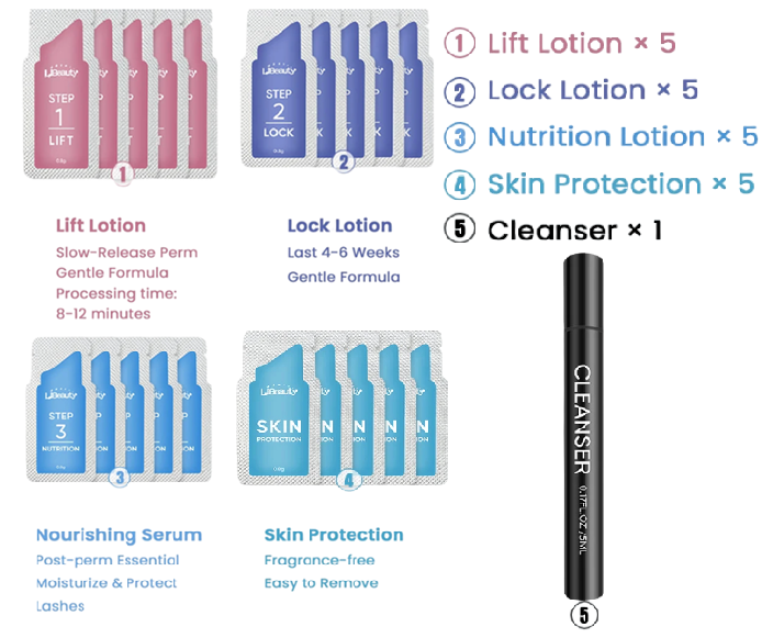• Inhoud verpakking: 10× emulsie voor wimpers 0,8 g, 10× fixatiemiddel 0,8 g (10 paar – 10 applicaties)
