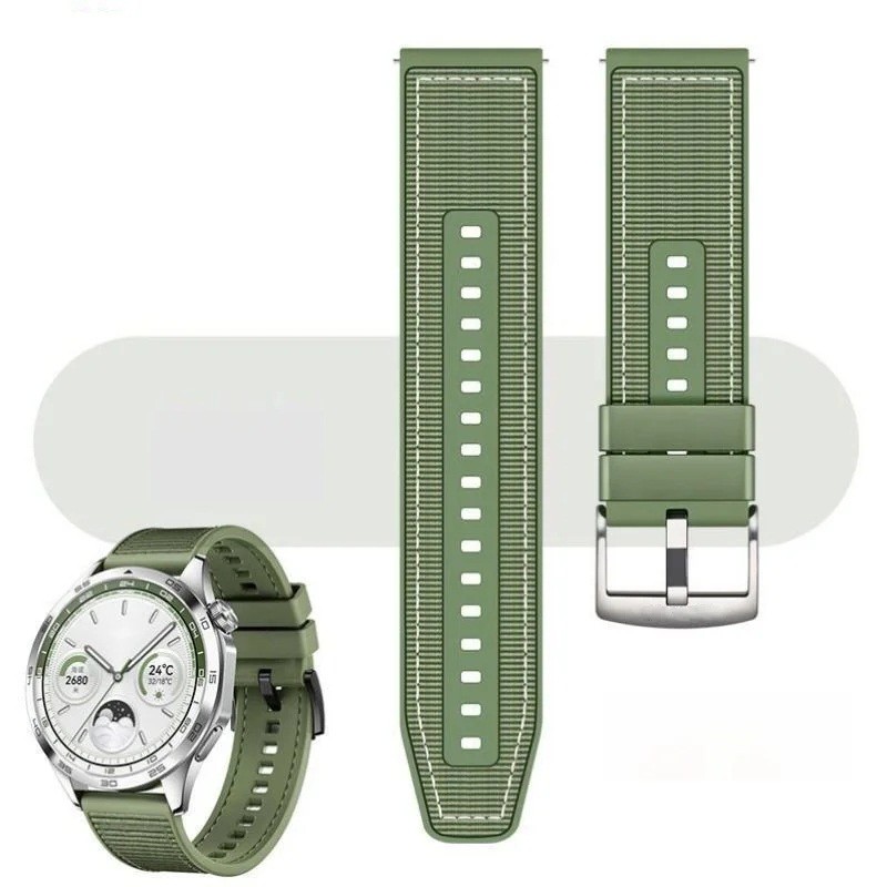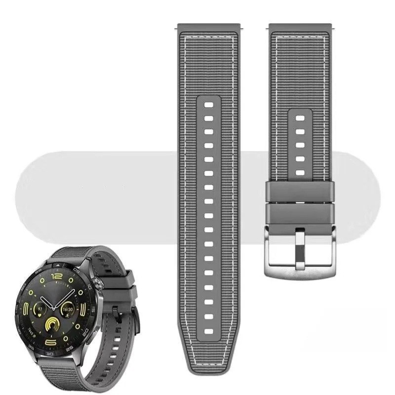 Deze moderne 22mm band combineert duurzaam siliconen en stevige nylonvezels, waardoor het de ideale balans biedt tussen comfort, duurzaamheid en flexibiliteit. Het is ontworpen voor een breed scala aan slimme horloges van Huawei en Samsung, die dankzij de compatibele bevestiging perfect aanvullen en stevig blijven zitten, zelfs bij intensief gebruik. Het getextureerde oppervlak verbetert de ademendheid, wat vooral gewaardeerd wordt tijdens het sporten, langdurig dragen of in warmere weersomstandigheden. Het siliconen gedeelte zorgt voor een aangenaam contact met de huid en vergemakkelijkt het onderhoud.