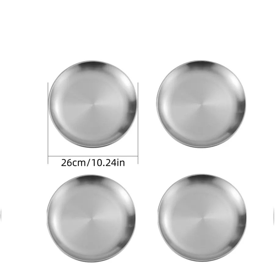 Startpagina Startpagina Huis en huishouden Voor de keuken Tafelaccessoires Borden 4 stuks roestvrijstalen borden 26 cm Zilveren keukentafels ronde serveerschalen voor hoofdgerechten en familiediners