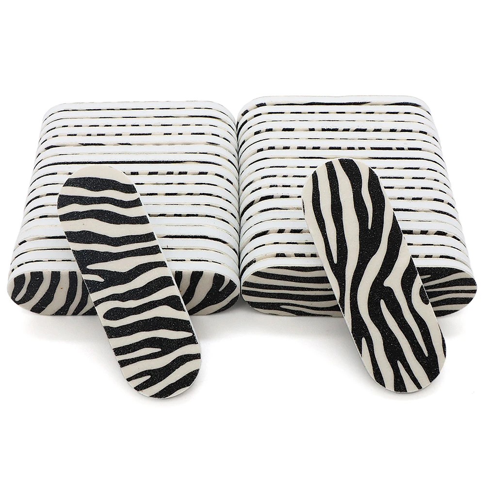 50 stuks Vijl voor nagels 6 x 1,9 cm Zebra-motief Schuurpapier EVA-spons Mini wegwerpvijl Manicure pedicure