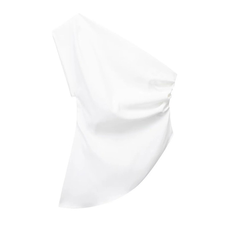 Stijlvolle damestop met asymmetrische snit en één mouw, ideaal voor avondevenementen, feestjes of modieuze combinaties voor in de stad en op vakantie. Volledige beschrijving