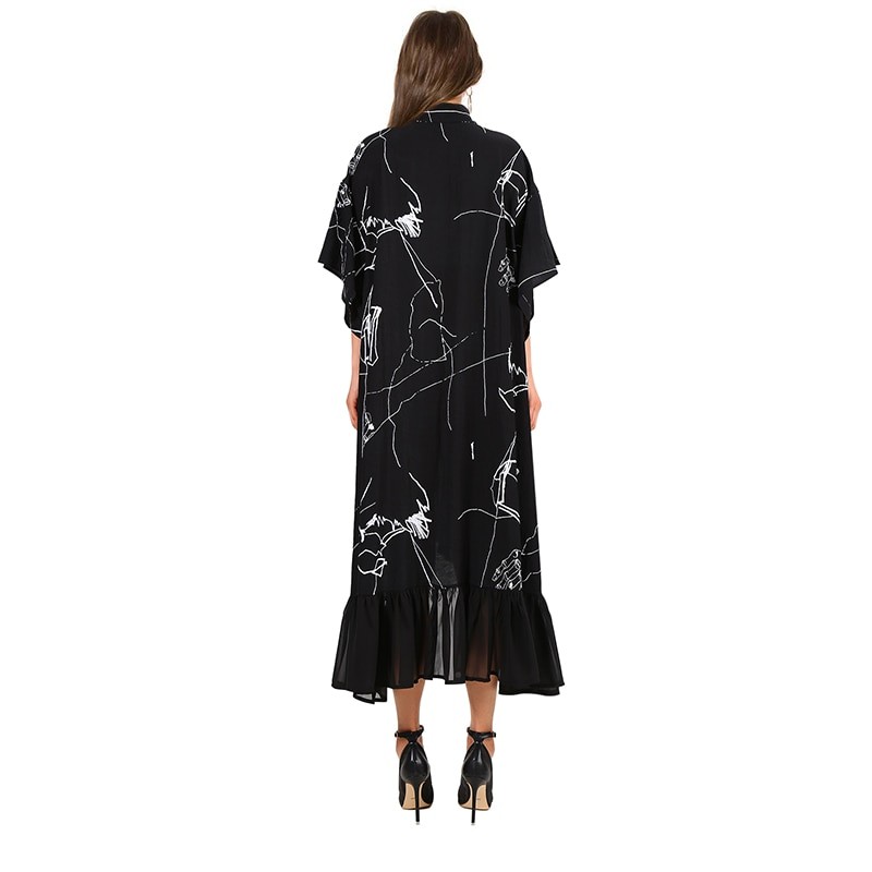 Asymmetrische maxi-jurk voor dames met een losse shirtvorm.