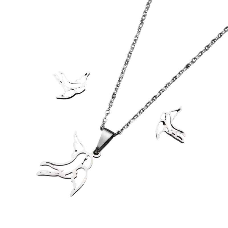 Deze set benadrukt de vrouwelijkheid en geeft een subtiele natuurlijke accent aan de outfit. Het zwaluwmotief heeft een tijdloze uitstraling en is gemakkelijk te combineren met zomerse jurken en elegante modellen. Roestvrij staal zorgt voor een lange levensduur en eenvoudig onderhoud zonder verlies van glans. Als u op zoek bent naar elegante damesjuwelenset met natuurlijk motief, is deze variant de ideale keuze. Avifaunale juwelenset van roestvrij staal wordt een prachtige aanvulling voor elke gelegenheid.