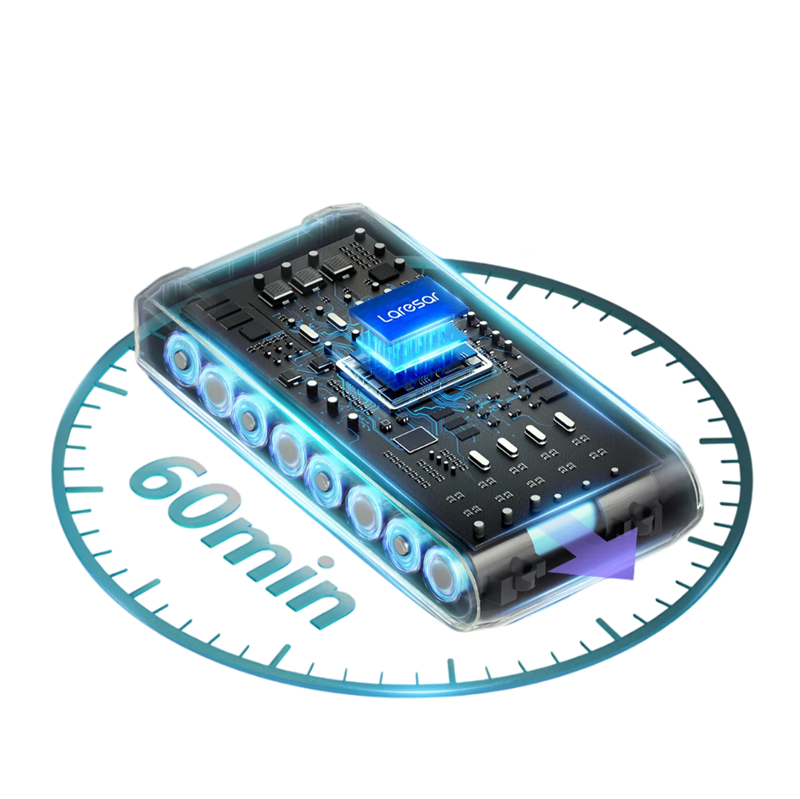 De batterij Laresar V7 is ontwikkeld om maximale stabiliteit van prestaties te waarborgen, zelfs bij langdurig stofzuigen. Dankzij de acht cellen biedt het hoge capaciteit en constante spanning, wat de gebruiksduur verlengt zonder dat frequent opladen nodig is. De robuste constructie en geavanceerde veiligheidscircuits beschermen het apparaat tegen oververhitting, overspanning en overladen.