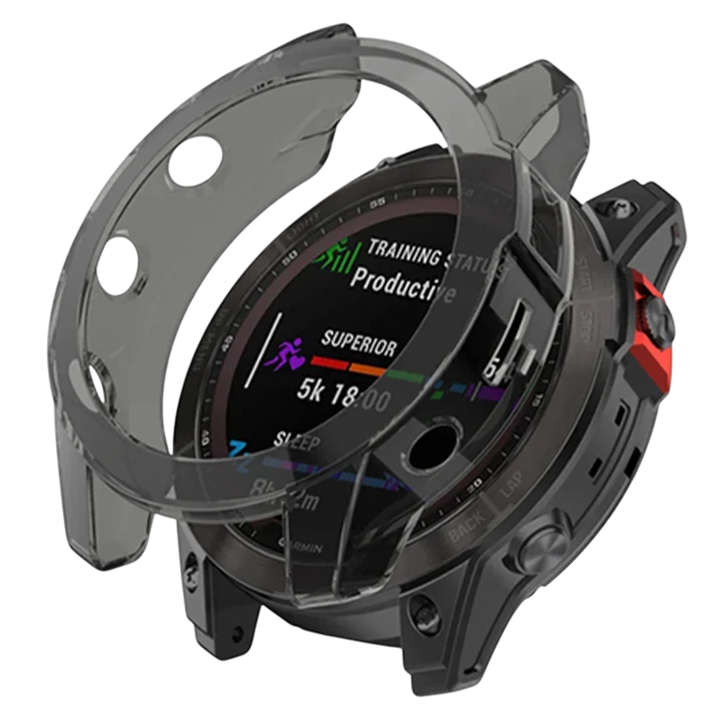 De beschermhoes is een eenvoudig accessoire voor Garmin smartwatches. Het helpt het horlogekader te beschermen tijdens dagelijks gebruik en kan het risico op kleine beschadigingen door contact met harde oppervlakken verminderen. Dankzij het flexibele TPU-materiaal kan de hoes eenvoudig worden aangebracht en past deze zich aan de vorm van het horloge aan. De hoes is ontworpen voor de modellen Garmin Fenix 7 en Garmin Fenix 7 Pro en behoudt de toegang tot hun bedieningselementen. De transparante uitvoering behoudt tegelijkertijd het oorspronkelijke uiterlijk van het horloge.