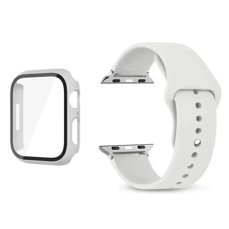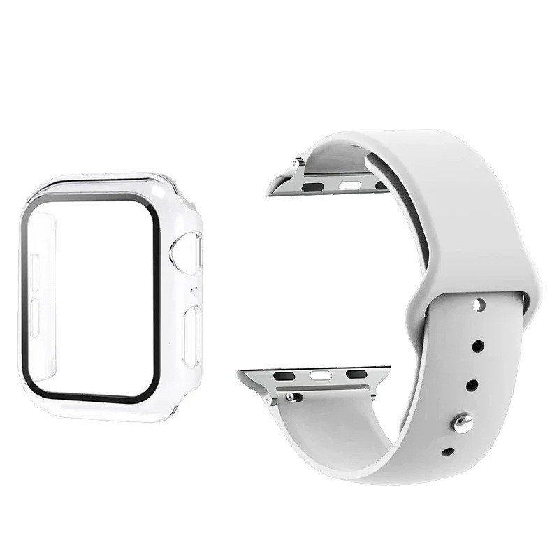 Complete beschermset voor Apple Watch 38 mm bevat gehard 9H glas, hoesje en bandje. Beschermt het display en het lichaam van de horloge tijdens normaal gebruik. Volledige beschrijving