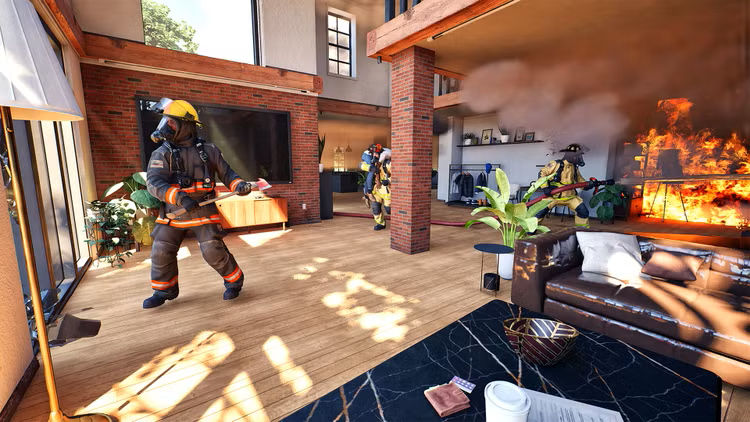VERBONDEN TEGEN VUUR . Sta oog in oog met onvoorspelbare gevaren, vecht samen met uw team tegen gevaarlijke branden en red levens in de Brandweersimulator: Ignite. Neem de rol aan van een Amerikaanse brandweerman in een uitgestelde stad in het Amerikaanse Midwesten, waar elke missie uw vaardigheden tot het uiterste test. Ervaar de sfeer van brandbestrijding in verbluffende visuele kwaliteit in een intuïtieve en coöperatieve multiplayer modus met 3 vrienden of met de hulp van uw NPC-gestuurde team. Vecht tegen woedende en dynamische vlammen, hitte en rook – alles gesimuleerd in real-time. Geavanceerde fysica- en grafische systemen aangedreven door Unreal Engine 5 laten u onderdompelen in de wereld van brandweermannen zoals nooit tevoren.