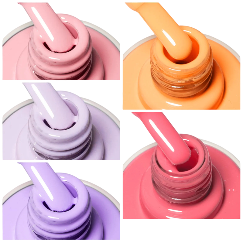 Deze collectie van vijf gelnagellakken van 5×10 ml is ontworpen voor gebruikers die kleurvariabiliteit willen combineren met een langdurig resultaat en een huidvriendelijke samenstelling. Elke lak heeft een zachte consistentie, die gemakkelijk te controleren is tijdens de applicatie en helpt om een gelijkmatige dekking zonder oneffenheden te bereiken. Dankzij de vegan samenstelling zonder HEMA en TPO zijn de lakken vriendelijker voor de nagels en de huid en helpen ze irritatie bij herhaald gebruik te verminderen. Uitharding gebeurt snel in UV- en LED-lampen, wat zorgt voor een soepele werking zonder onnodig wachten. De set is geschikt voor zowel professionele nagelsalons als voor thuismanicure.