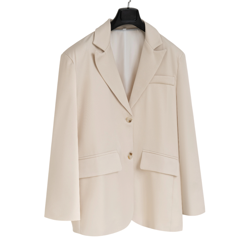 Dames beige elegante blazer met kraag en zakken Effen blazer van polyester Stijlvolle jas voor kantoor, sociale evenementen en dagelijks gebruik