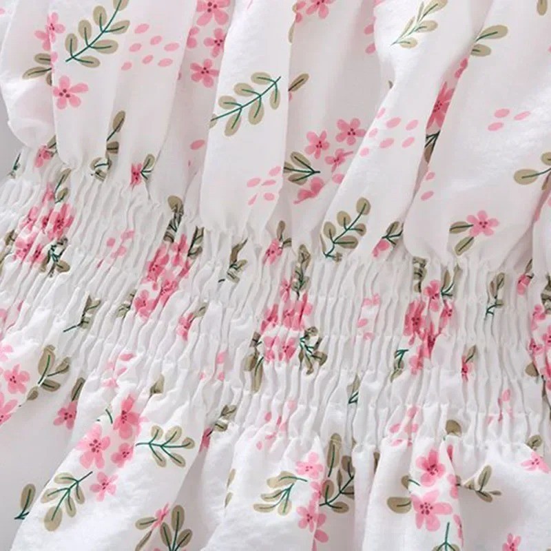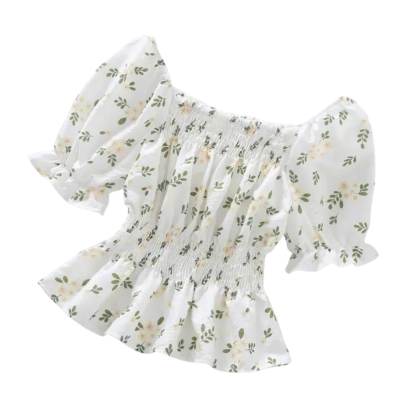 Dames bloemenblouse met blote schouders Korte mouw Gerimpelde snit met elastiek in de taille Zomer elegante blouse