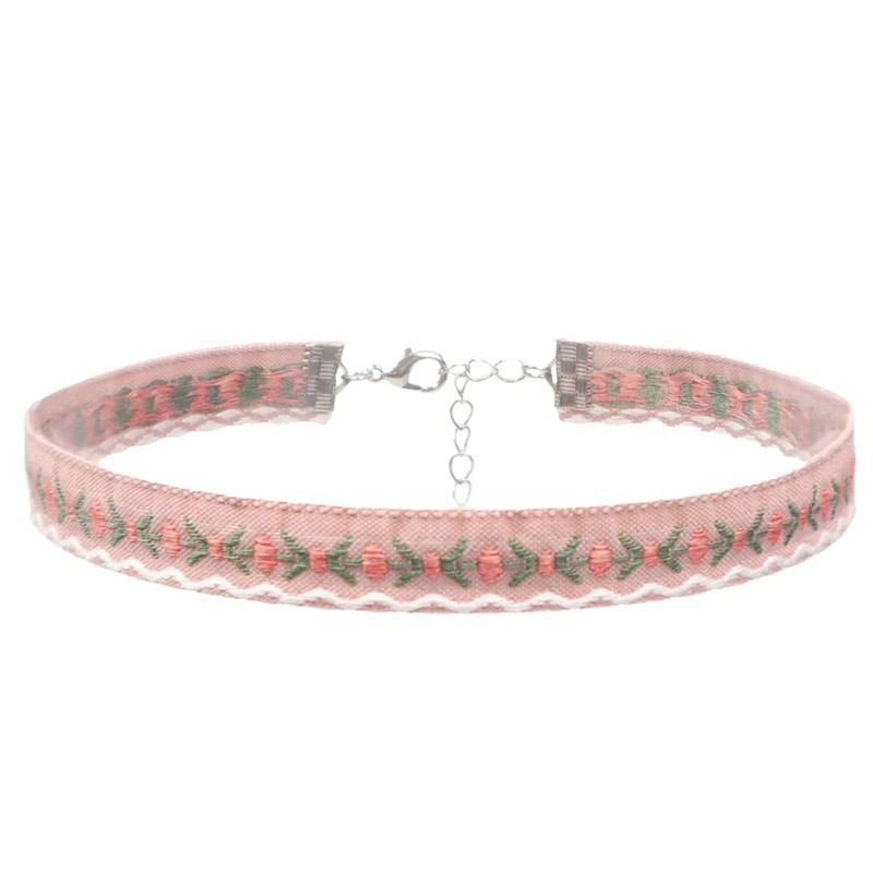 Startpagina Startpagina Sieraden en horloges Dames sieraden en horloges Dames chokers Dames choker ketting met geborduurd patroon en sluiting katoen roze textielaccessoire voor dagelijks gebruik