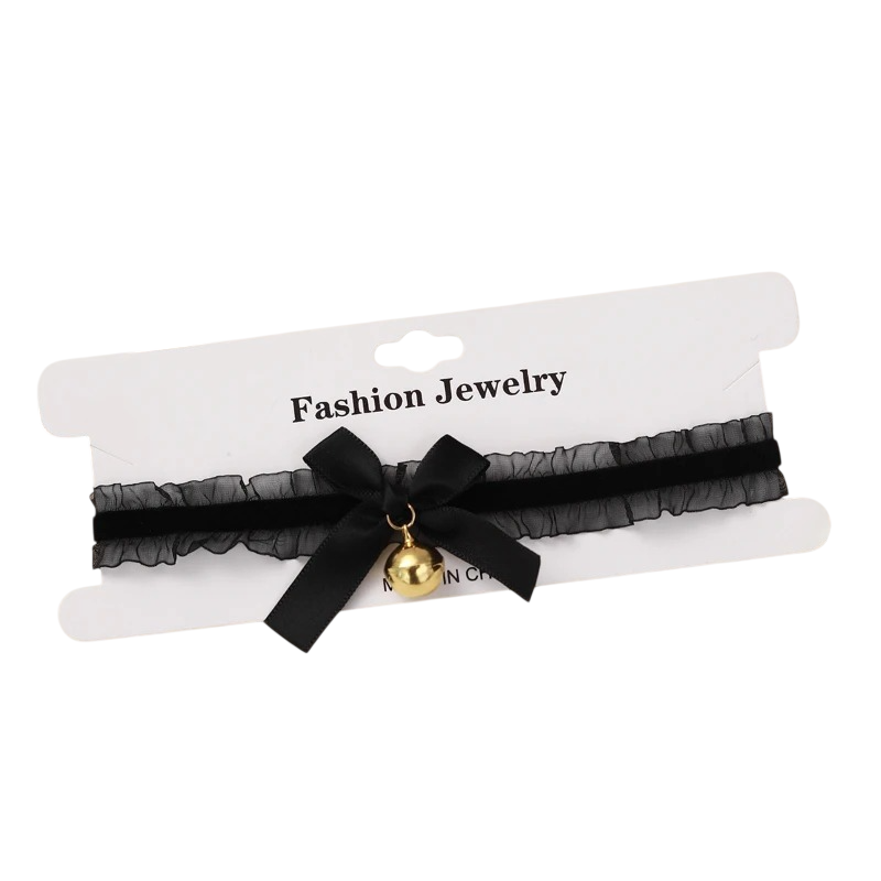 Het belangrijkste element is de strikbedel, die zich in het midden van de halsketting bevindt. Dit detail is subtiel en geeft het accessoire een specifieke karakter. Fluwelen band vormt de basis van de choker en contrasteert met de lichte structuur van het kant. Praktische sluiting maakt comfortabel dragen en eenvoudige hantering mogelijk.