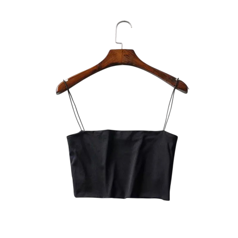 Startpagina Startpagina Kleding en accessoires Dameskleding Dames tanktops Dames crop top Dunne bandjes O-hals Effen korte top van polyester en spandex Rekbare zomer top