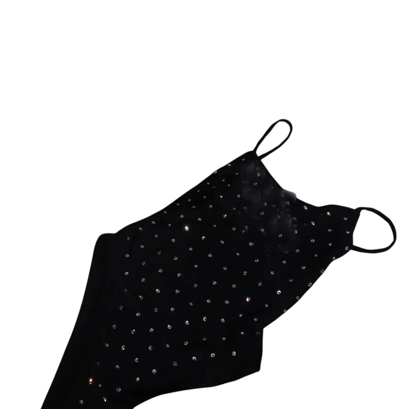 Effen badmode met stipjes, dunne bandjes en O-hals. Elastische spandex en polyester zorgen voor comfort en een perfecte pasvorm. Volledige beschrijving