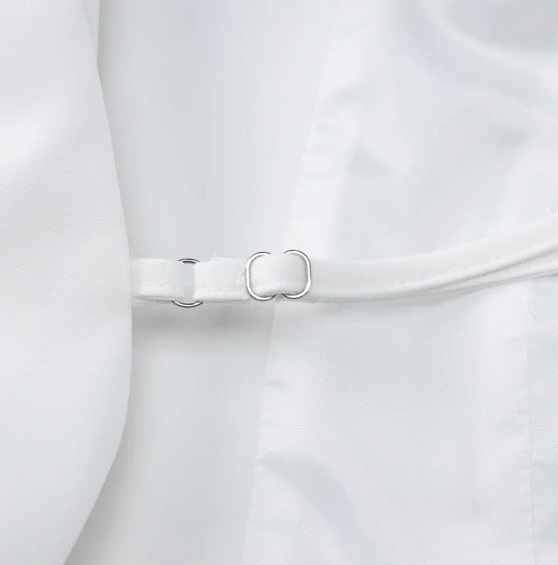 • Rug: losse uitsnede op de rug met verstelbare gesp voor aanpassing aan de figuur