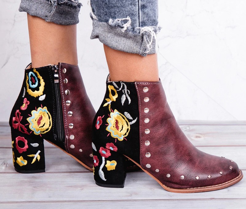 De Bianca enkellaarsjes met hak en geborduurde bloemen voor dames zullen u zeker bevallen. De schoenen zijn gemaakt van luxe materiaal.