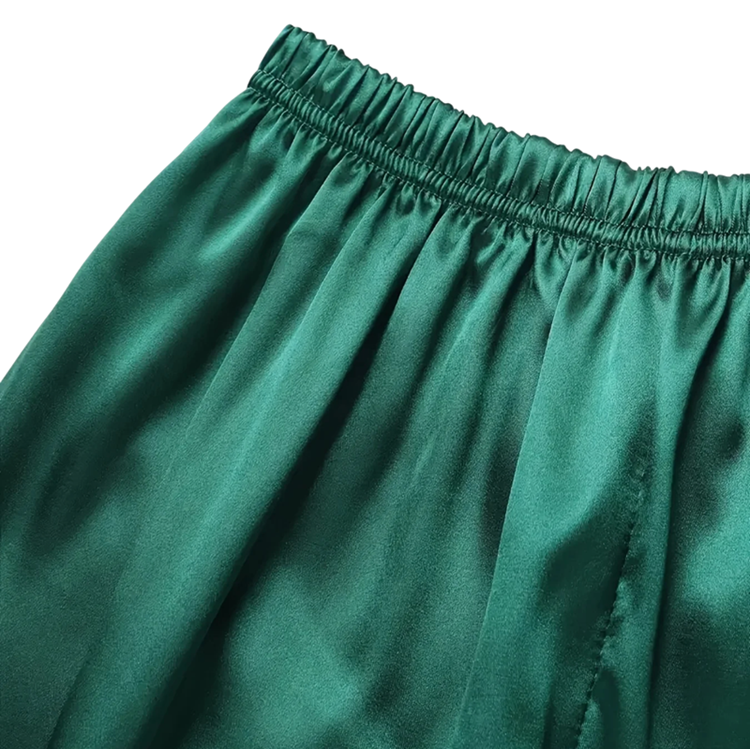 Deze elegante pyjamast set is bedoeld voor vrouwen die comfort en stijl in één outfit willen combineren. Fluwelen materiaal van polyester en spandex biedt een uitzonderlijk aangenaam gevoel op de huid en heeft een luxe uitstraling. Knoopsluiting met klassieke kraag geeft het model verfijning en het zakje op de borst een praktisch detail. Elastische tailleband van de broeken zorgt voor bewegingsvrijheid en comfort tijdens het dragen gedurende de hele avond. Dankzij de elegante snit en glanzende oppervlak is dit set ideaal niet alleen voor het slapen, maar ook als stijlvolle huisoutfit. Het is een perfect cadeau voor elke vrouw die waarde hecht aan kwaliteit, elegantie en comfort.