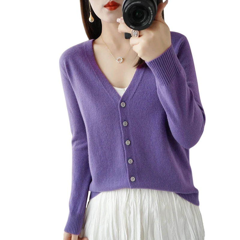Dames gebreide cardigan met V-hals Elegante knopen trui Effen modieuze trui Verschillende kleuren Polyester Acryl