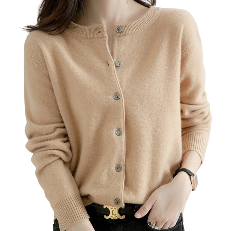 Dames gebreide cardigan van polyester met een O-hals Een effen elegante trui met knopen en lange mouwen Universele maat