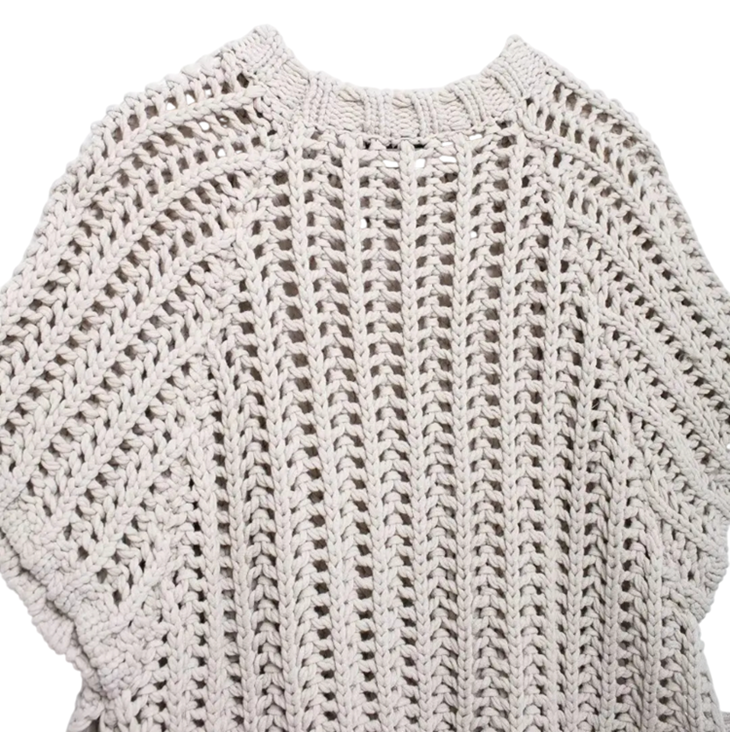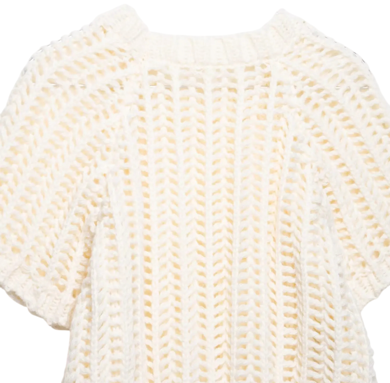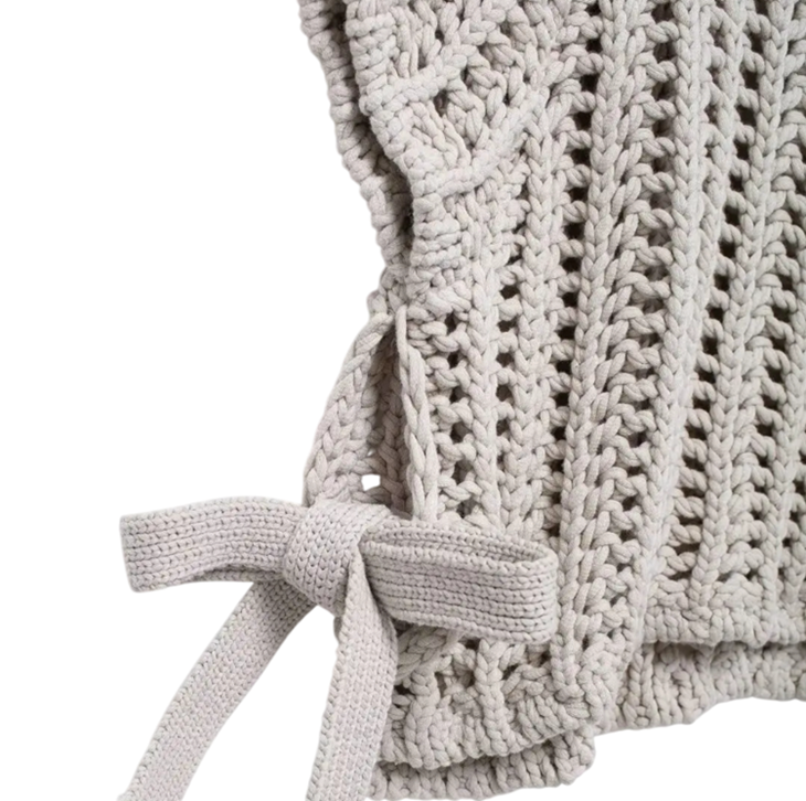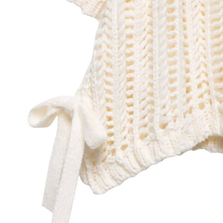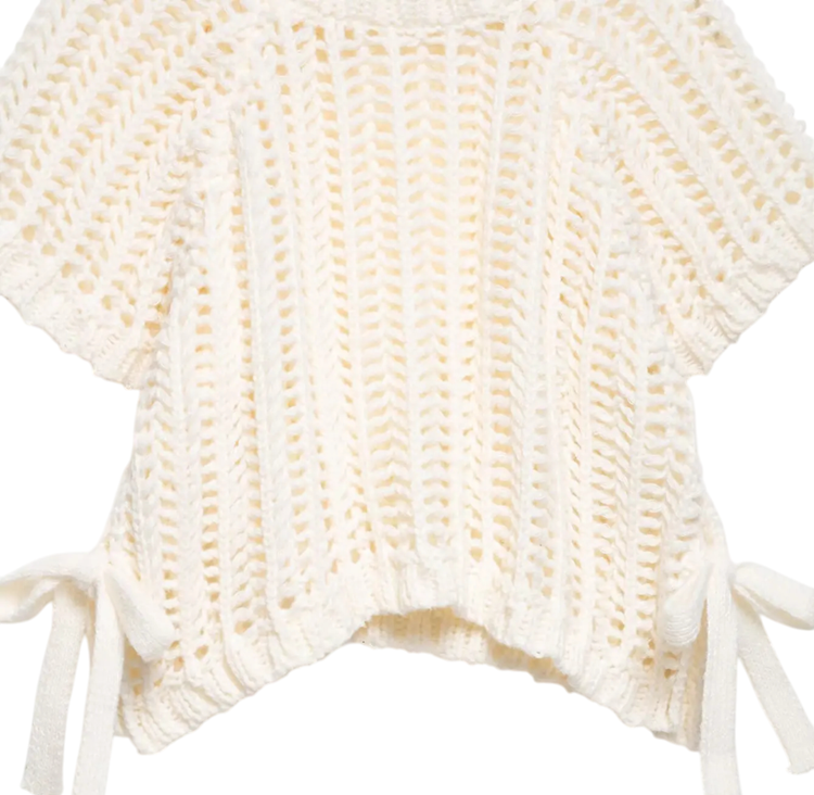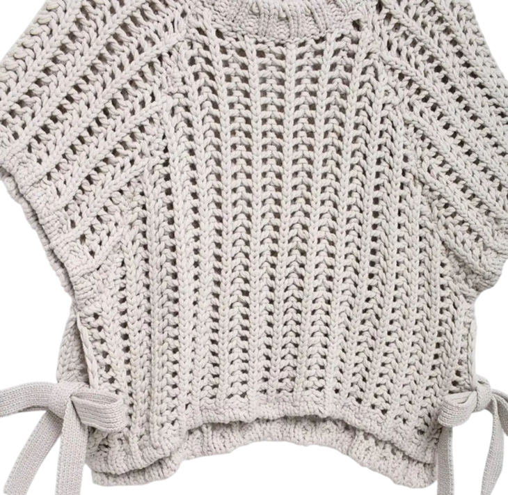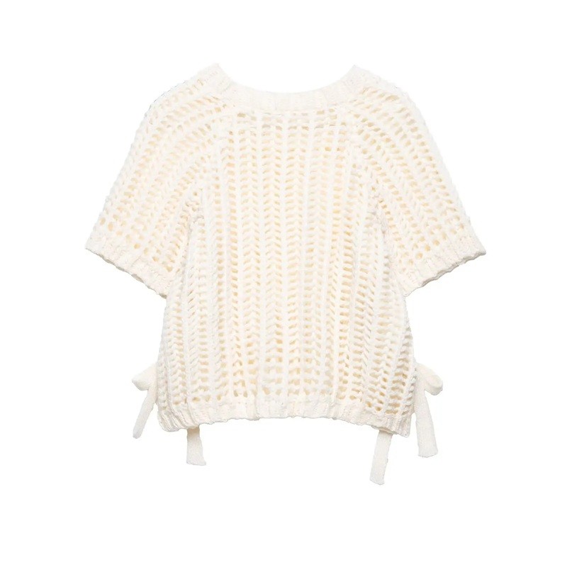 Stijlvolle gebreide top met korte mouwen en striksluiting aan de zijkanten. Comfortabel, elegant en gemakkelijk te combineren stuk voor dagelijkse en zomerse outfits. Volledige beschrijving