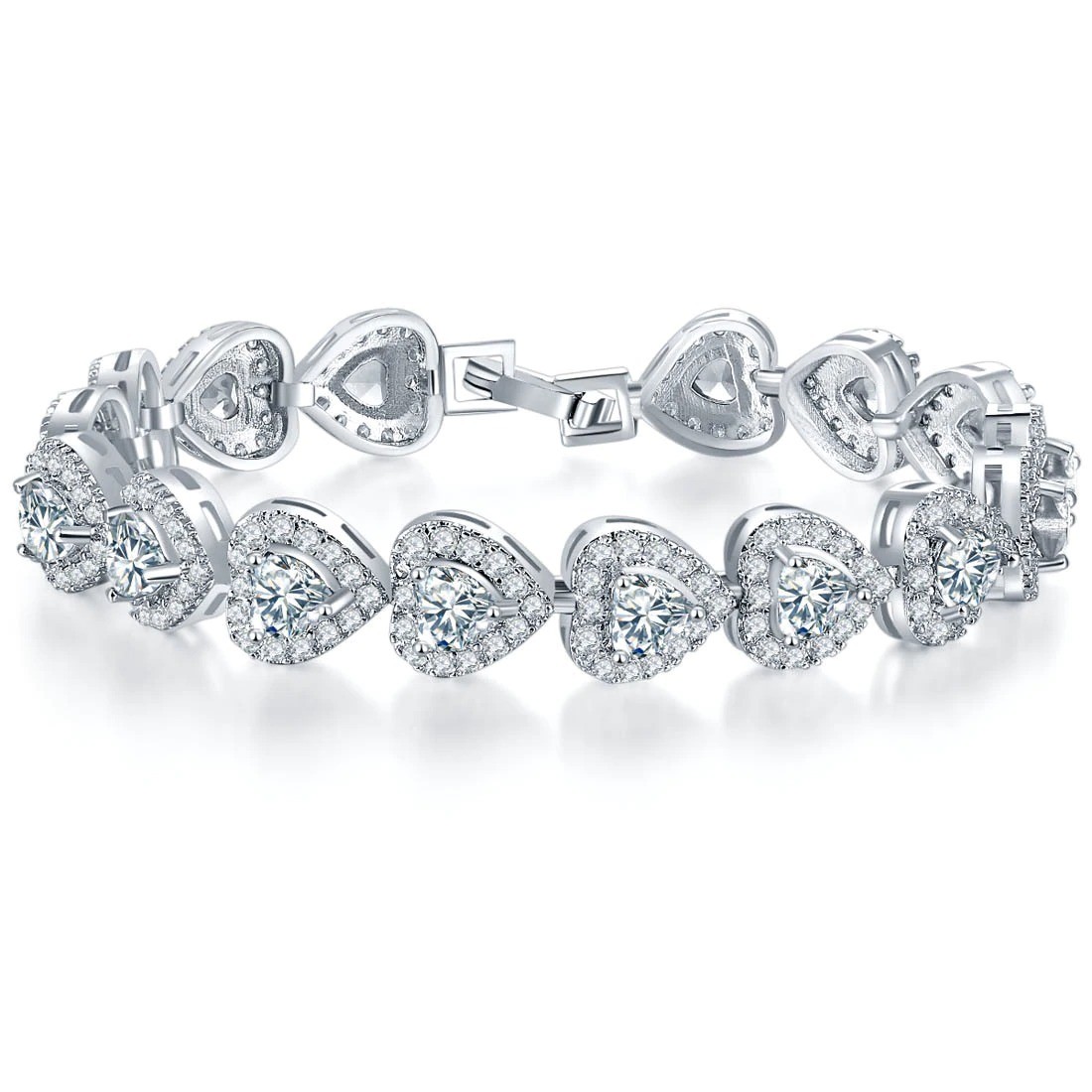 Startpagina Startpagina Sieraden en horloges Dames sieraden en horloges Damesarmbanden Dames hartvormige armband met steentjes zilver