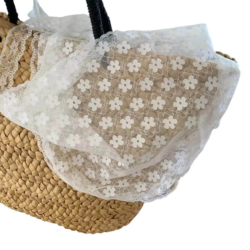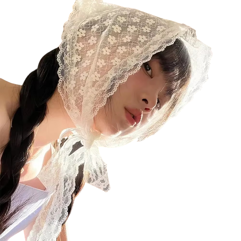 Dames Kanten Driehoek Sjaal Bloemenpatroon Ademend Dun Hoofdbedekking Artistieke Stijl Jaarrond Draagbaar Elegante Accessoire