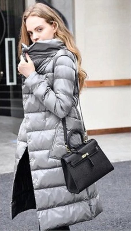 Dames lange gewatteerde jas omkeerbaar