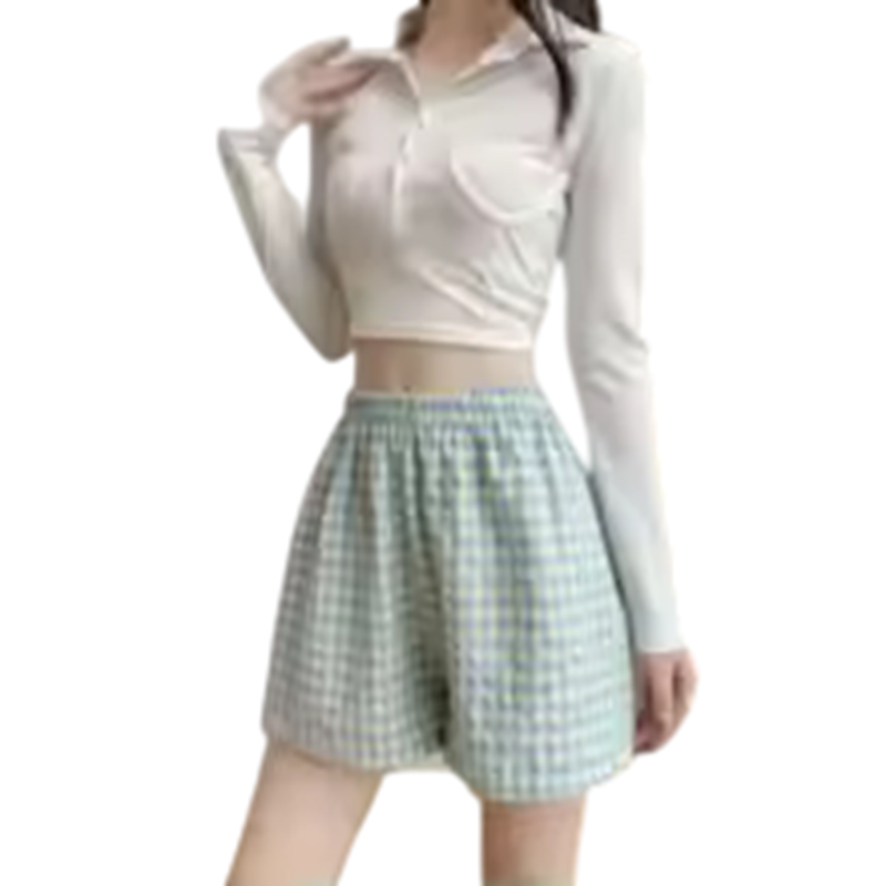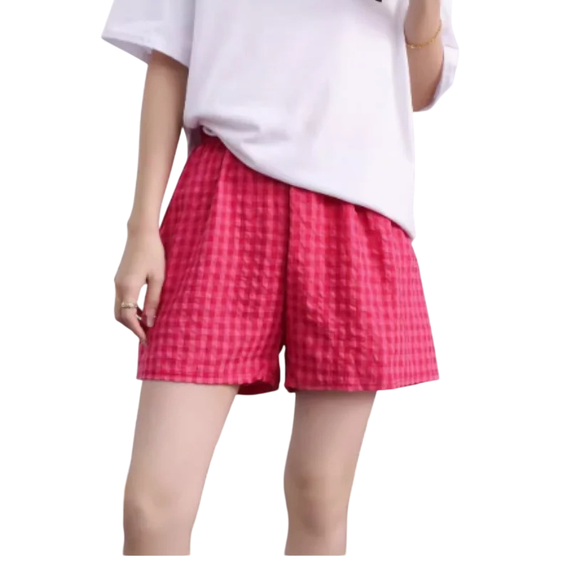 Startpagina Startpagina Kleding en accessoires Dameskleding Dames shorts Dames shorts Hoge taille Elastische band Vrije snit Katoen Polyester Effen Geruit Zomer comfortabele shorts