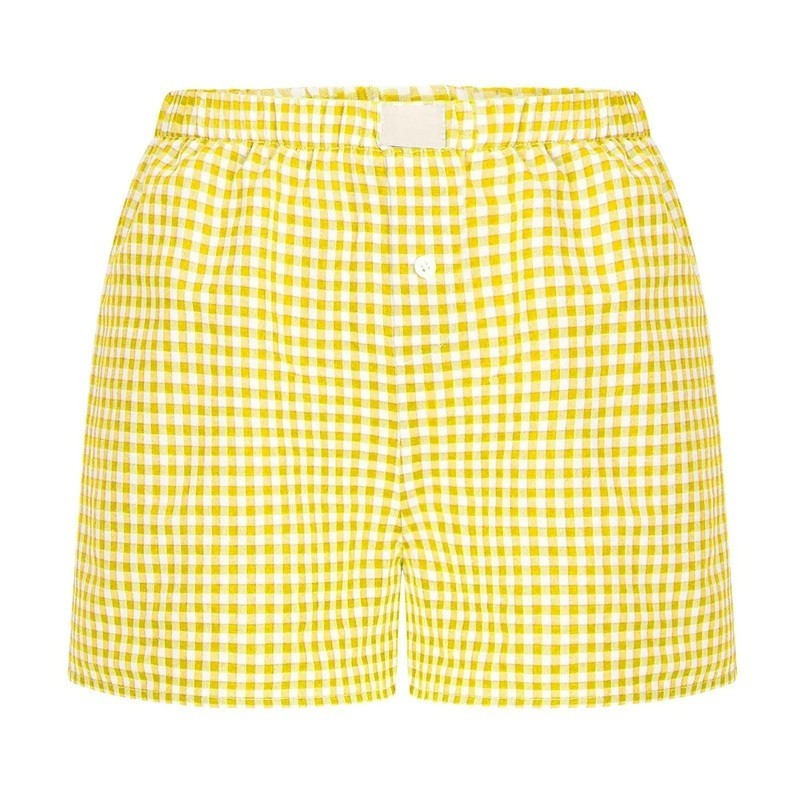 Comfortabele vrijetijdsshorts met elastische taille en modern geruit patroon, ideaal voor de zomer, thuisgebruik en vrije tijd. Volledige beschrijving