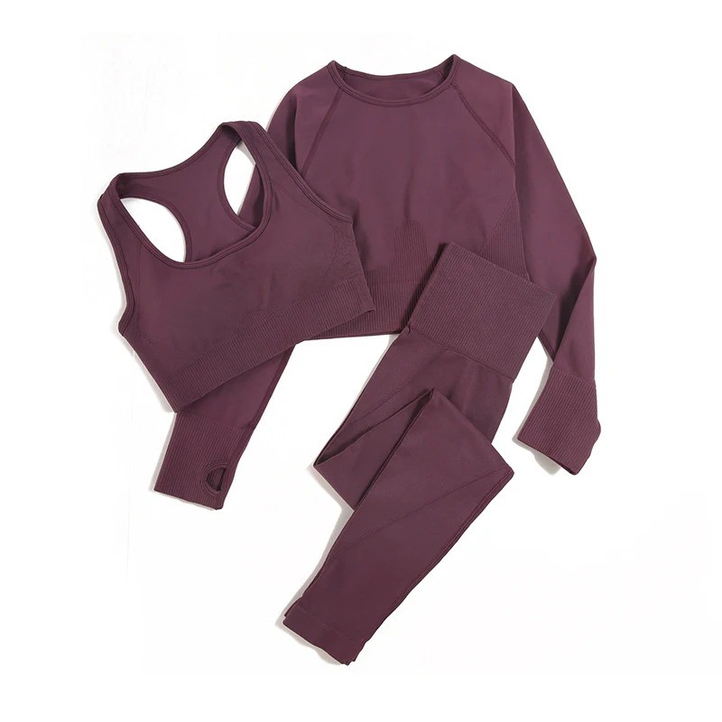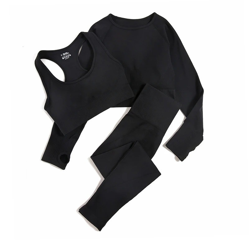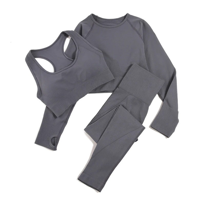 De outfit is ontworpen om maximaal comfort te bieden tijdens fitness training, yoga, hardlopen en thuis oefeningen. De leggings passen zich aan het lichaam aan en stellen natuurlijke beweging zonder beperking mogelijk. De sportbeha zorgt voor de nodige ondersteuning en stabiliteit tijdens beweging, terwijl het T-shirt met lange mouwen bescherming biedt tegen de kou en tegelijkertijd ademend blijft. Dankzij de universele snit is de set geschikt voor zowel intensieve sport als dagelijks actief gebruik.