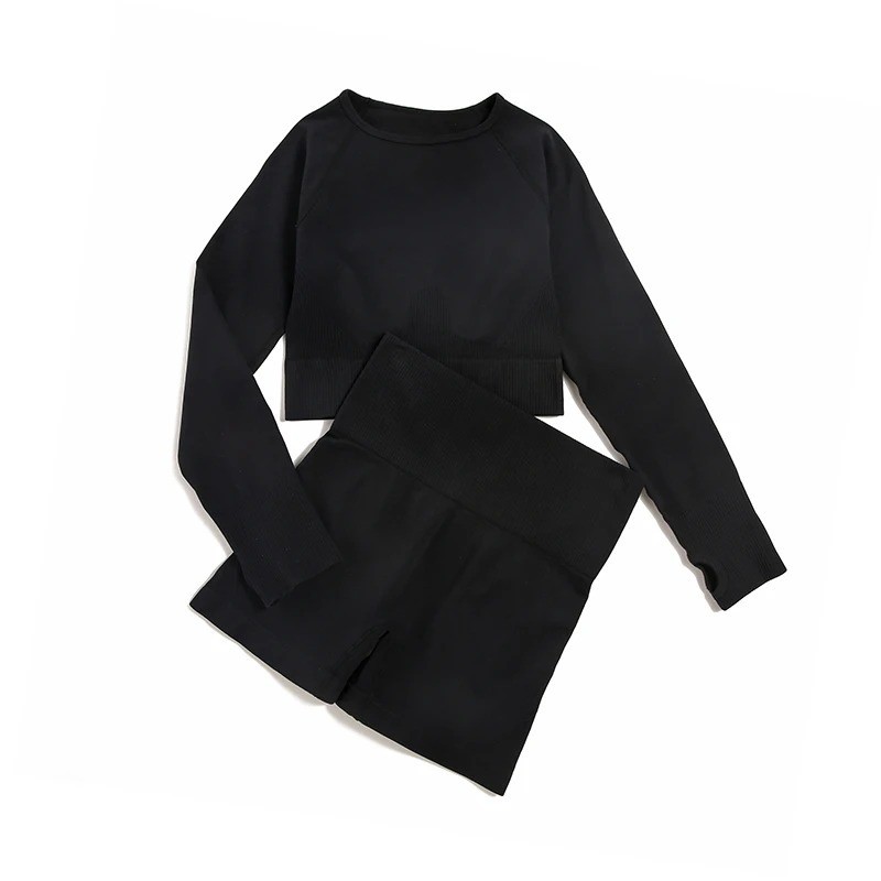 Dames sportoutfit Shorts en shirt met lange mouwen Effen fitnessoutfit van nylon