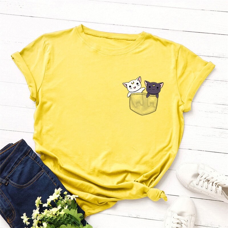 Dames T-shirt met kattenprint B289