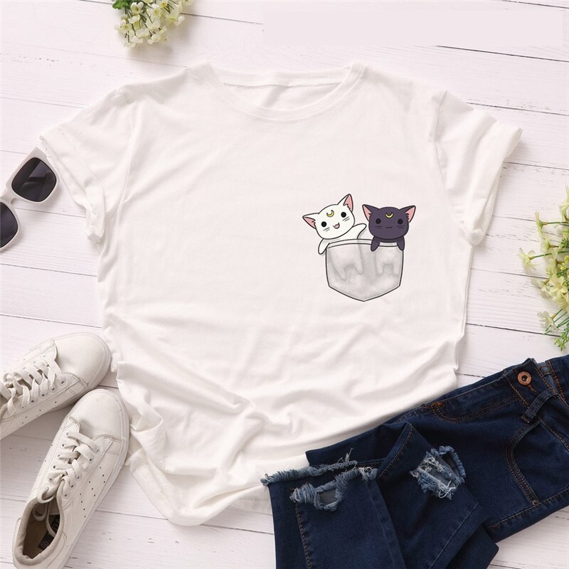 Dames T-shirt met kattenprint