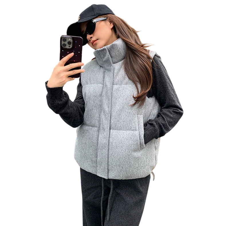 Stijlvol dames wintervest met col, rits en zakken. Warm materiaal van katoen en polyester zorgt voor comfort en elegantie tijdens koude dagen. Volledige beschrijving