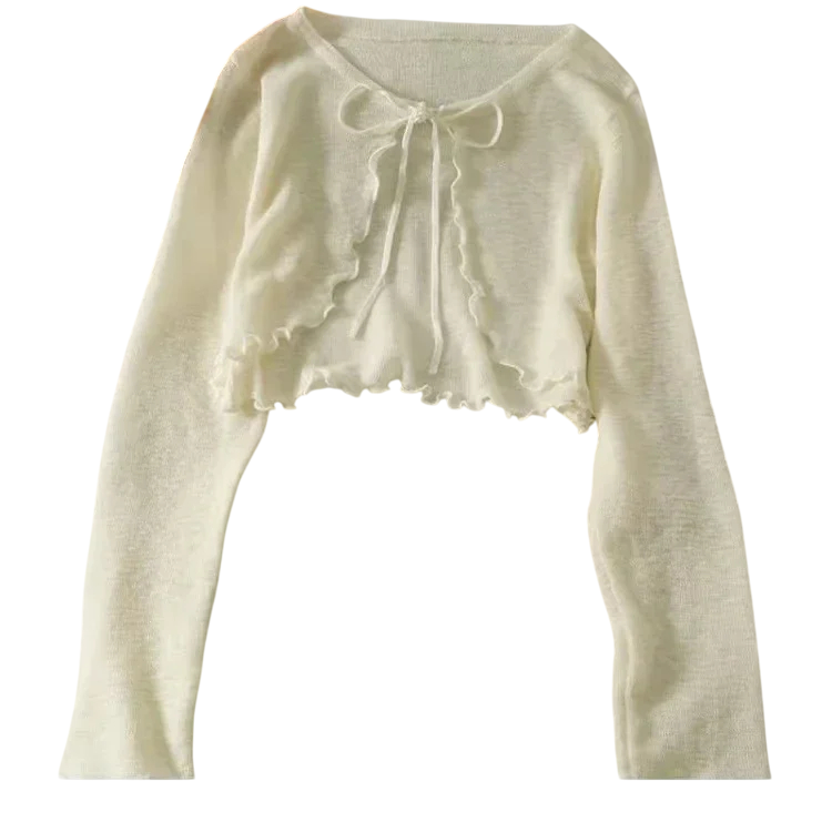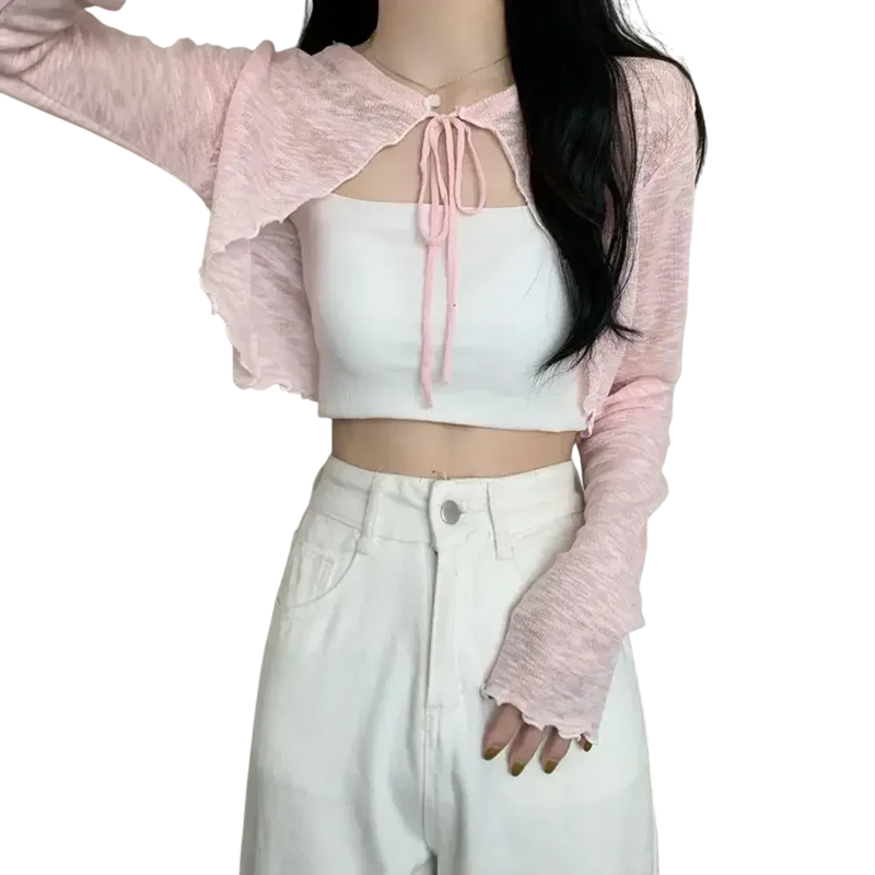 Dames zomer cardigan met lange mouwen en striksluiting Effen lichte trui van polyester Elegante luchtige top voor warme dagen