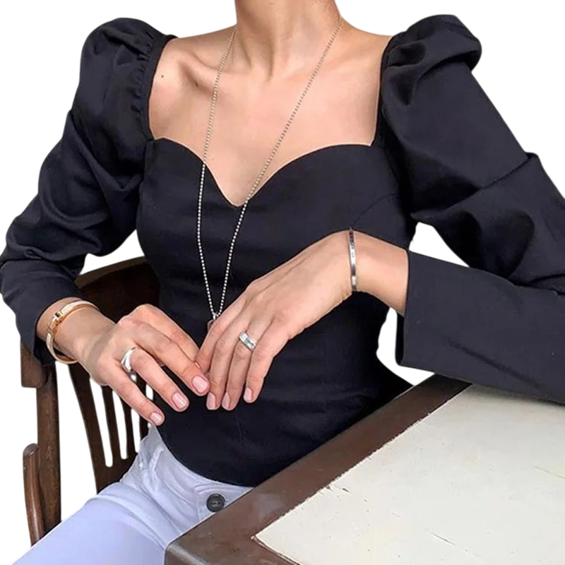• Dames zwarte blouse met rimpeling voor een elegante en vrouwelijke uitstraling