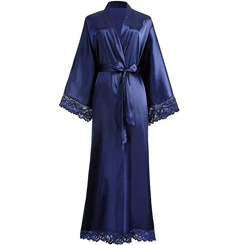 Startpagina Startpagina Kleding en accessoires Dameskleding Dames nachtkleding Dames badjassen Damesbadjas met kant Elegante lichte badjas met zijdeachtige glans Striksluiting Luxe comfortabele badjas van zachte polyester