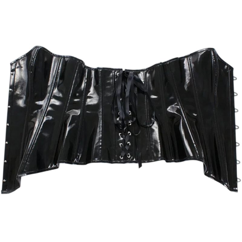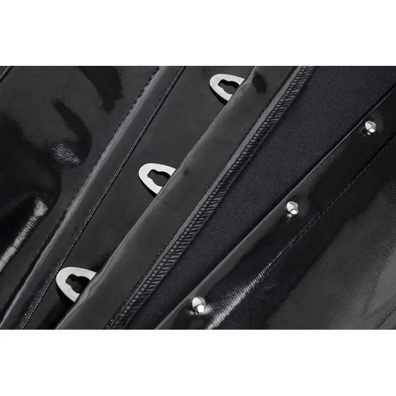 Een sensueel en opvallend mode-item dat de vrouwelijke rondingen accentueert en de outfit een zelfverzekerde uitstraling geeft. Dit damescorset zonder mouwen is ontworpen om mooi om de figuur te sluiten en de taille en decolleté te benadrukken. De glanzende zwarte uitvoering heeft een luxe en elegante uitstraling, waardoor het de ideale keuze is voor feesten, sociale evenementen en stijlvolle fotoshoots. De combinatie van materialen polyester en spandex zorgt voor elasticiteit, comfort en aanpassingsvermogen tijdens het dragen.