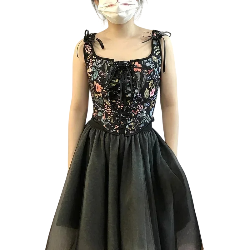 Startpagina Startpagina Kleding en accessoires Dameskleding Dames ondergoed Dames korsetten Damescorset Zwart Bloemenmotief Schouderbandjes Voorzijde Vetersluiting O-Hals Strikje Polyester Elegante Lingerie