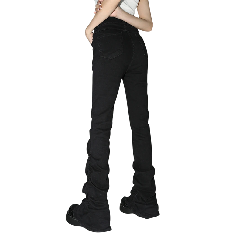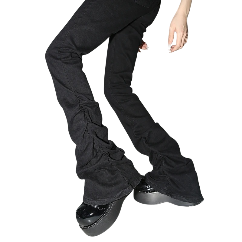 Startpagina Startpagina Kleding en accessoires Dameskleding Dames jeans Damesjeans zwart Effen Uitlopende pijpen Zakjes Katoen Polyester Comfortabele broek met flared pijpen Moderne elegante stijl