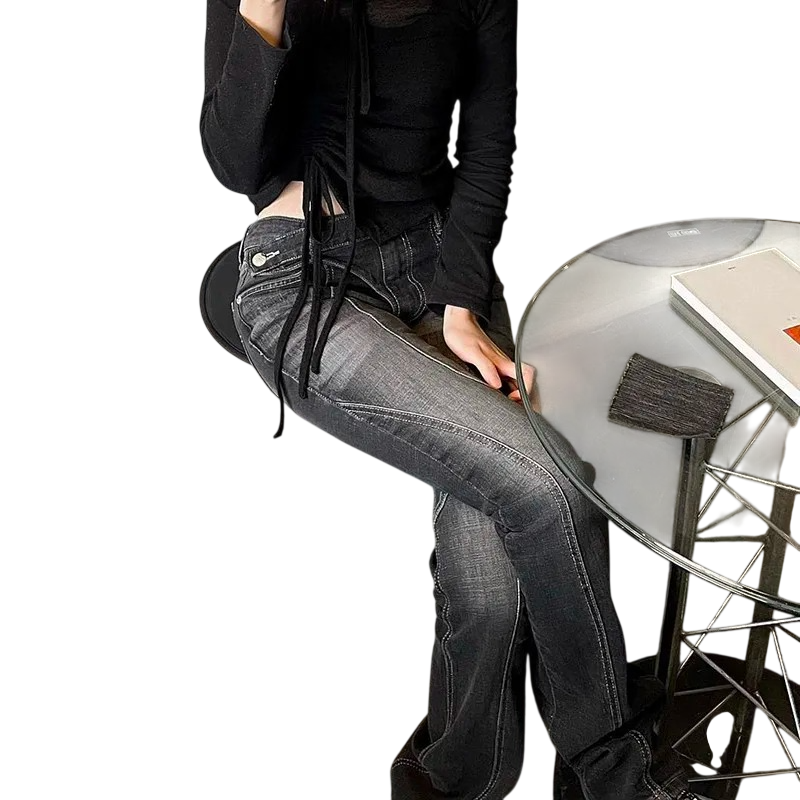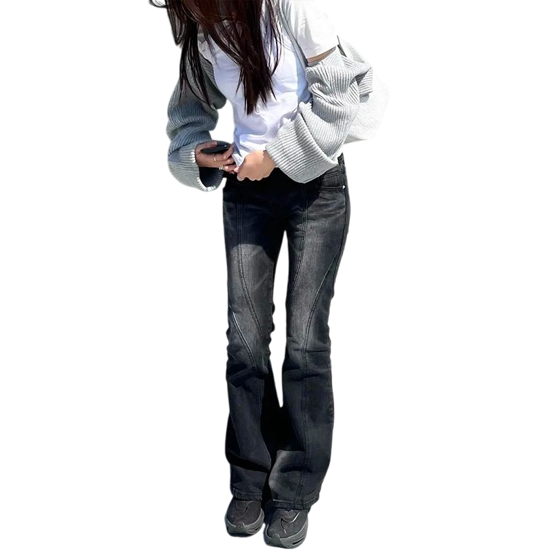 Damesjeans zwart Verwijde pijpen Zakken 100% Katoen Comfortabele broek met flared pijpen Elegante moderne stijl voor dagelijks gebruik
