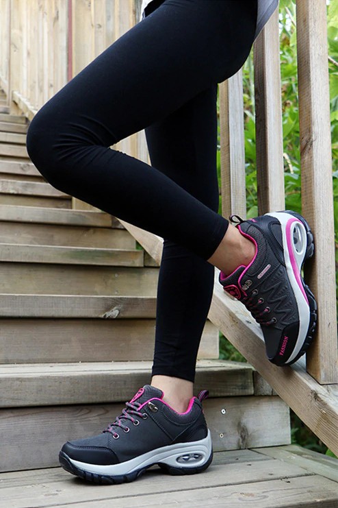 De schoenen zitten erg comfortabel en worden gestrikt met veters.