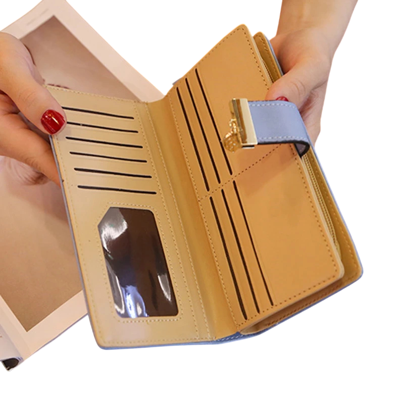 Deze damesportemonnee is ontworpen met de nadruk op functionaliteit, overzichtelijkheid en een visueel aantrekkelijke uitstraling. Dankzij de afmetingen 19 x 3,5 x 9,5 cm biedt het voldoende ruimte voor bankbiljetten, betaalkaarten en kleine persoonlijke benodigdheden. De multikleurige uitvoering, aangevuld met een subtiel motief van gouden bladeren, geeft de portemonnee een elegante en tegelijkertijd originele uitstraling. Kunstleer voelt glad aan en is aangenaam om aan te raken, wat zorgt voor comfort bij dagelijks gebruik. De combinatie van rits- en drukknoopsluiting helpt de inhoud veilig gesloten te houden.