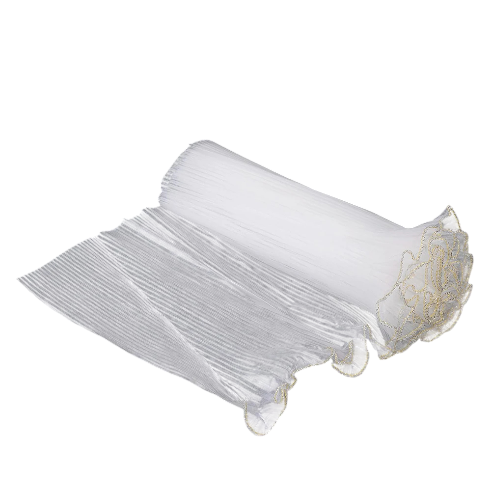 Dit decoratief papier 4 m x 28 cm is een geweldige keuze voor iedereen die zich bezighoudt met creatief knutselen, decoreren en bloemen verpakken. Het papier is gemaakt van golvend net, dat decoraties een unieke uitstraling en textuur geeft. Bovendien is het versierd met een gouden rand, die een luxe en elegante toets toevoegt. Dit papier is ideaal voor bruiloften, verjaardagen en andere vieringen, maar ook voor creatieve projecten, zoals het maken van bloemstukken of cadeauverpakkingen.
