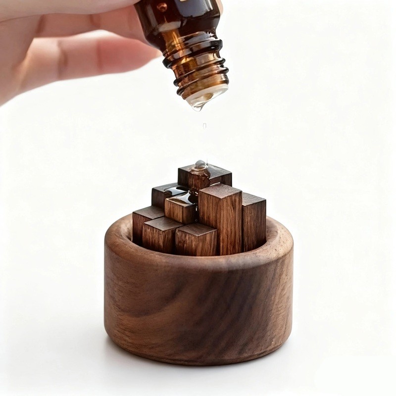 Decoratieve houten aromatherapie diffuser 6 cm voor essentiële oliën Deze elegante houten diffuser is een geweldige oplossing voor het creëren van een aangename en rustgevende sfeer in elke ruimte. Gemaakt van hoogwaardig beukenhout, heeft het een minimalistisch ontwerp dat past in zowel moderne als traditionele interieurs. Ideaal voor het druppelen van essentiële oliën, helpt deze diffuser om een subtiele geur te verspreiden die bijdraagt aan ontspanning en welzijn. Voor een perfecte aromatherapie-ervaring is het voldoende om een paar druppels van je favoriete essentiële olie op de houten blokken te druppelen en te genieten van de rustgevende effecten van de geur.