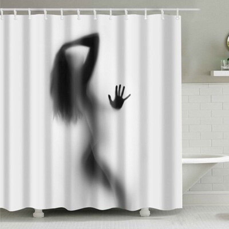 Startpagina Startpagina Huis en huishouden Badkameraccessoires Douchegordijnen Douchegordijn met een menselijk silhouetmotief