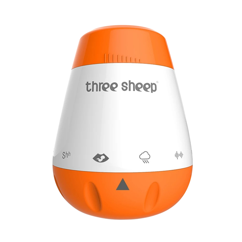 Draagbaar apparaat voor het in slaap vallen van kinderen met 6 rustgevende geluiden, inclusief stilte en hartslag, stand-by modus, oranje kleur, 9,8 x 7,7 cm