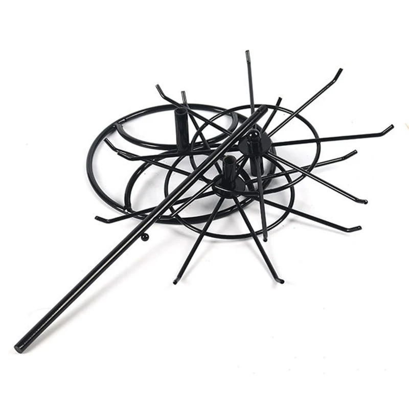 Draaiende sieradenstandaard dient voor het overzichtelijk opslaan en tentoonstellen van verschillende soorten sieraden. De constructie met twee lagen maakt het mogelijk om kettingen, armbanden, horloges of andere accessoires op te hangen.