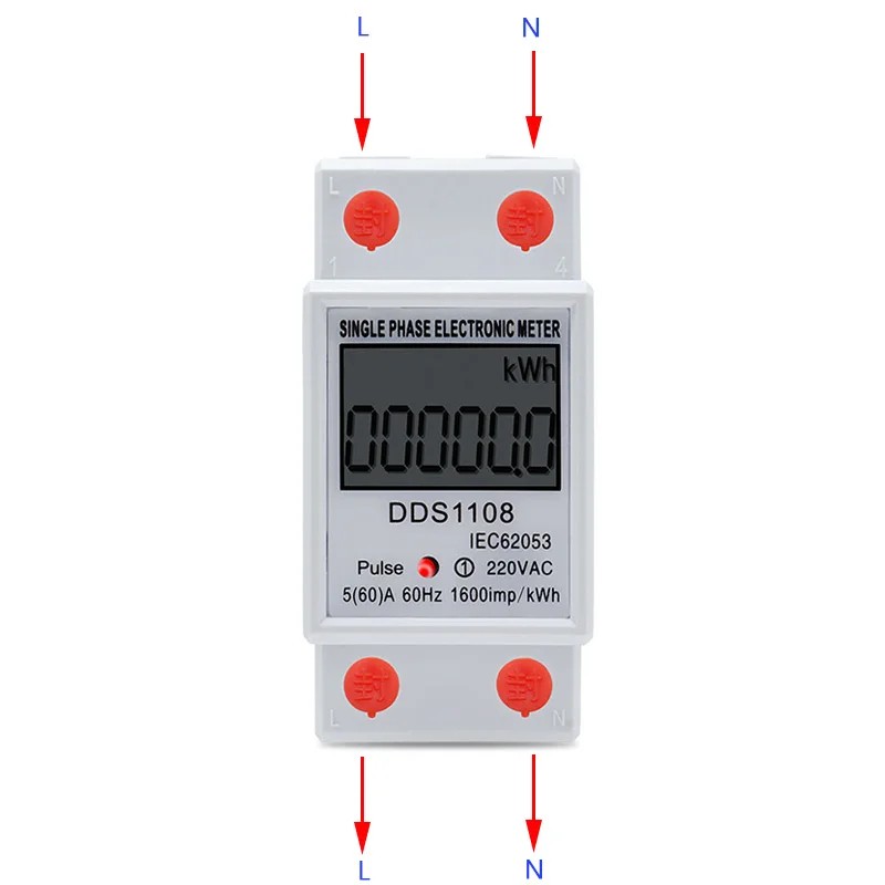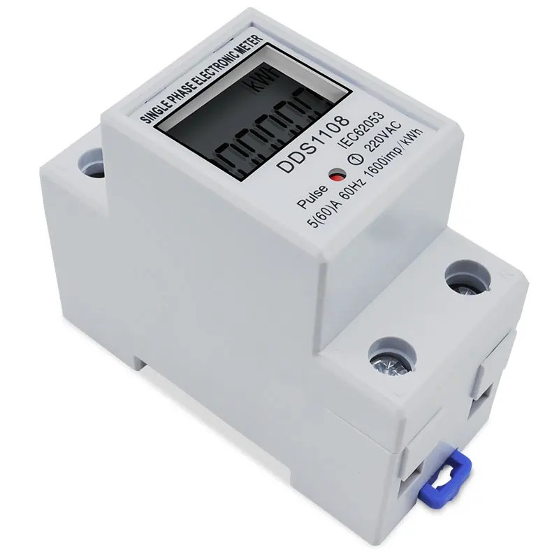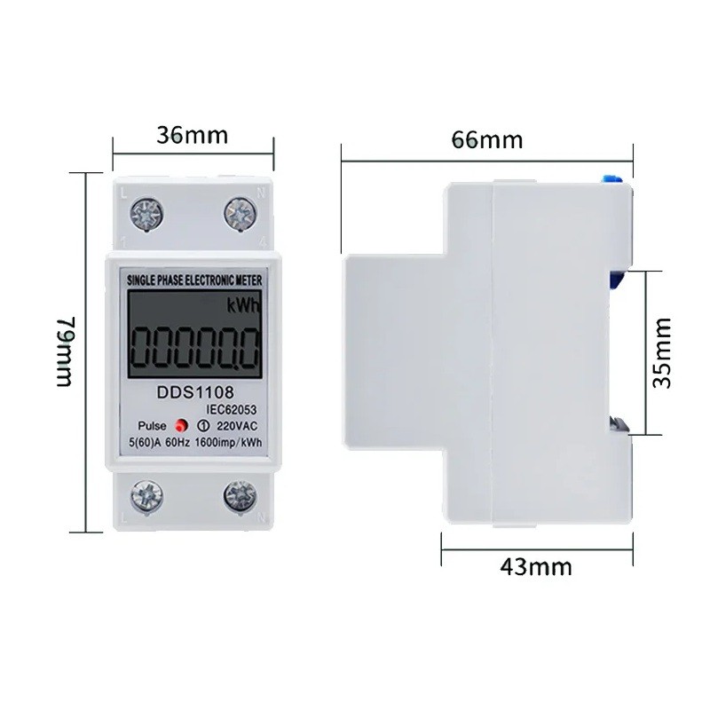 Eénfasige digitale elektriciteitsmeter DDS1108 is een betrouwbaar apparaat dat is ontworpen voor nauwkeurige meting van het werkelijke elektriciteitsverbruik in eenheden KWh. Het is ontworpen voor standaard huishoudelijke en industriële toepassingen met een voeding van 220 V en een maximale stroombelasting van 60 A. Dankzij de compacte afmetingen 79 x 36 x 43 cm en installatie op 35mm DIN-rail is het eenvoudig te plaatsen in schakelkasten en meetpanelen. Het grote, goed leesbare LCD-display toont zes cijfers voor nauwkeurige aflezingen en biedt een overzicht van de huidige verbruiksstatus.