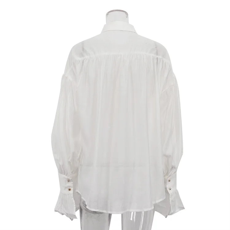 Elegante dames doorzichtige blouse met lange mouwen Effen polyester blouse met uitlopende mouwen en kraag Stijlvolle blouse met knopen